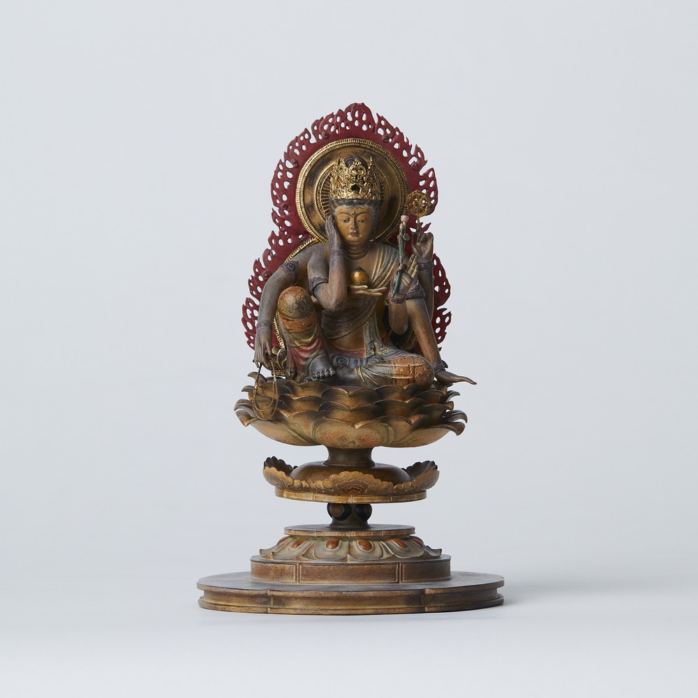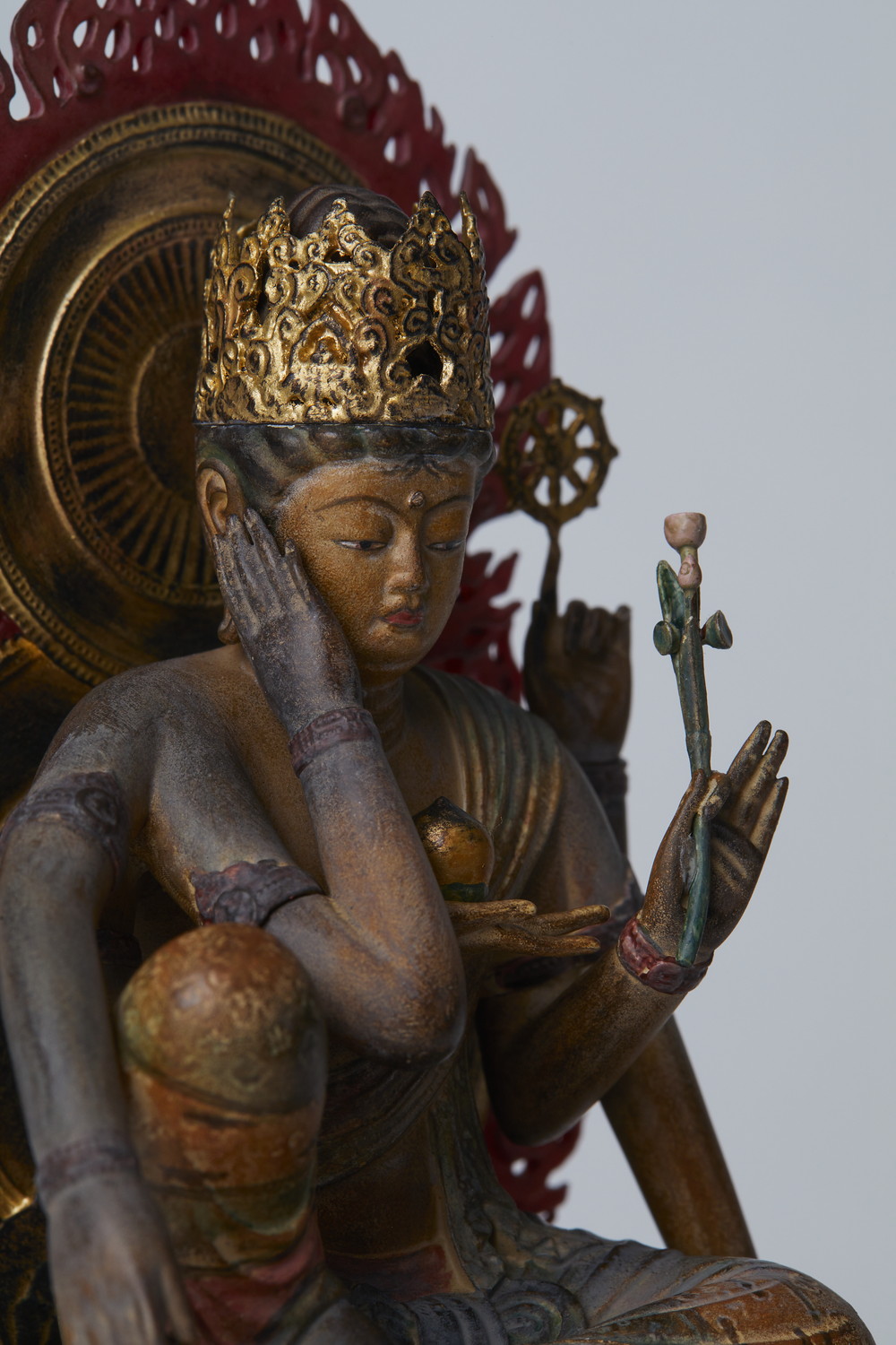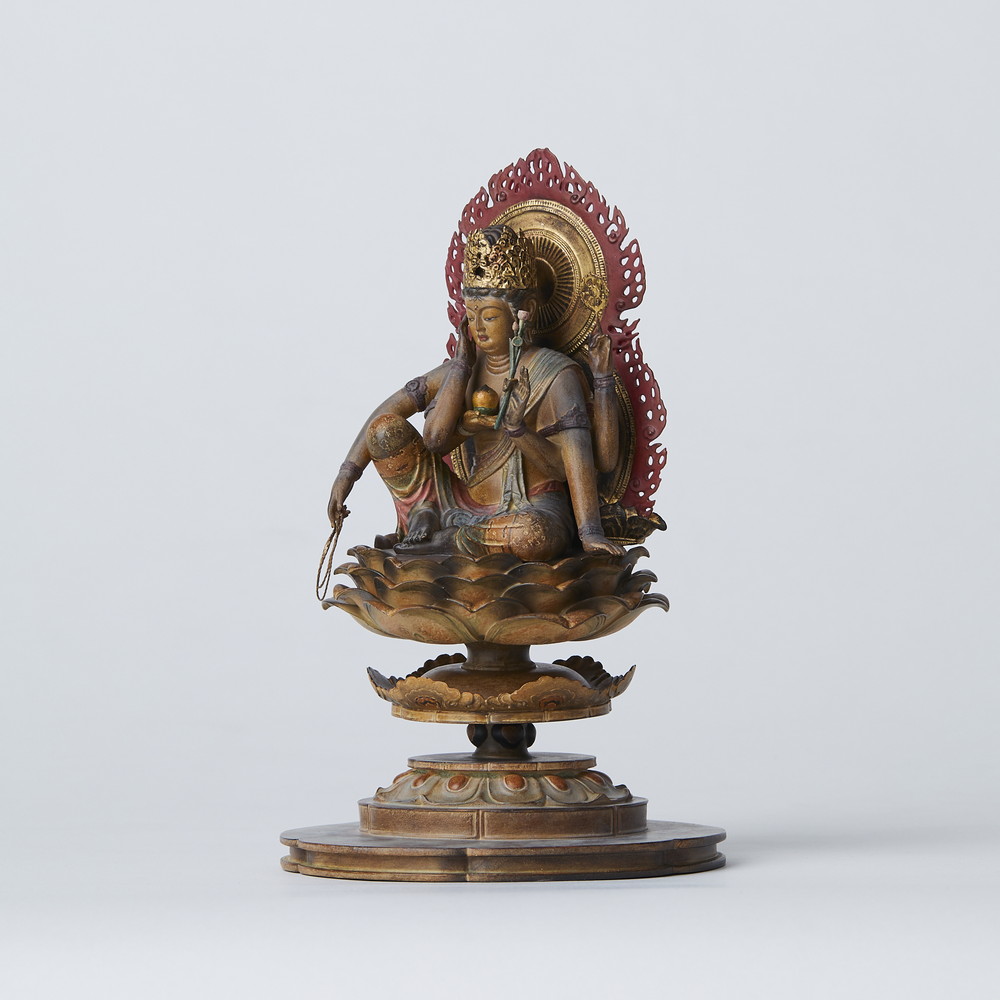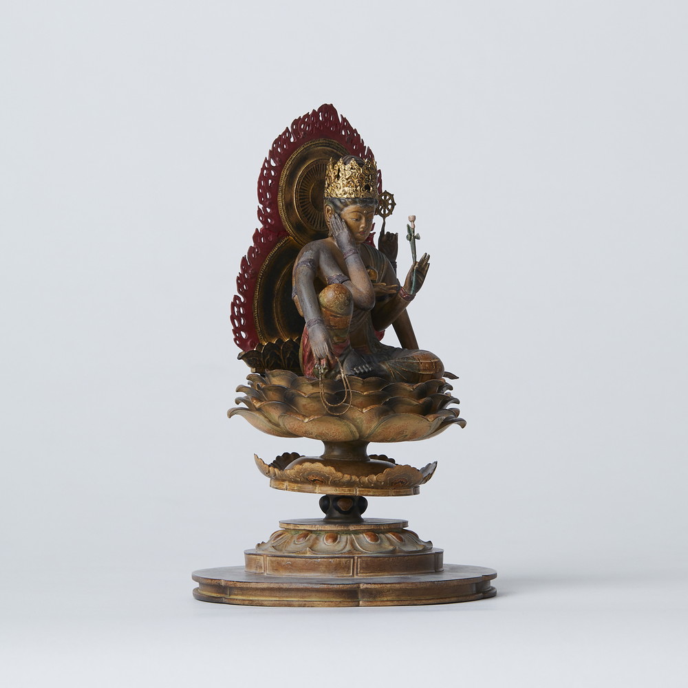 密教彫刻の傑作を手のひらサイズにモデルは大阪の国宝 木造如意輪観音坐像。長い間秘仏とされてきたため、造像当時の美しい姿を今にそのまま伝える貴重な作例です。