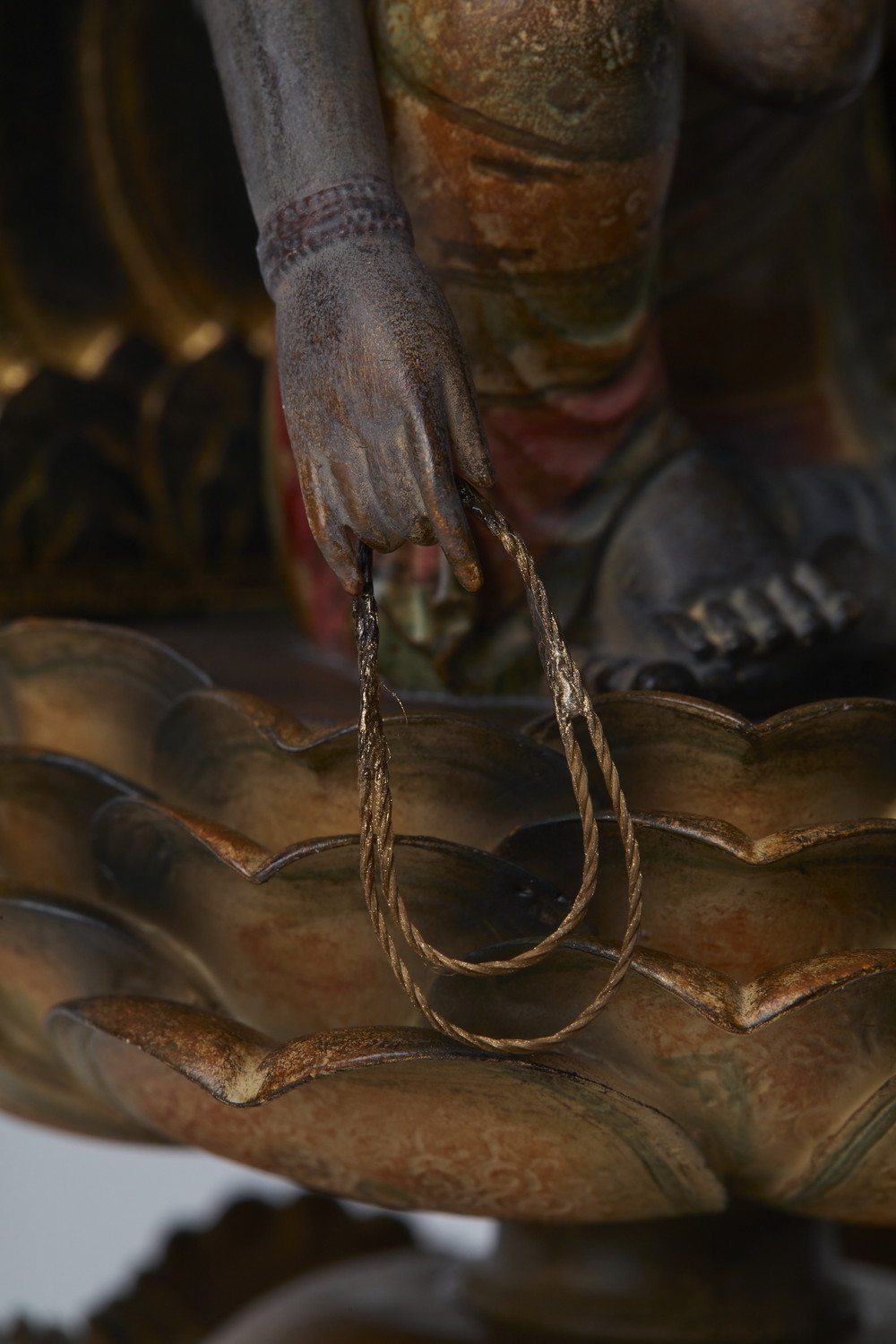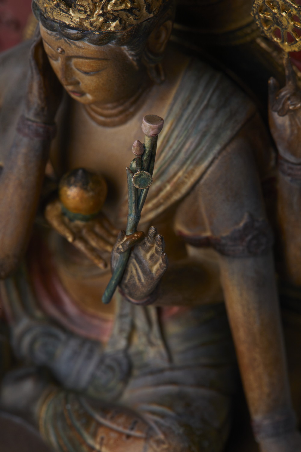 ふくよかで豊艶な肉体とエキゾチックな顔立ち、華麗で多彩な彩色表現。平安密教彫刻の傑作の名に相応しい妖艶かつ絢爛な存在感が見る者を魅了します。